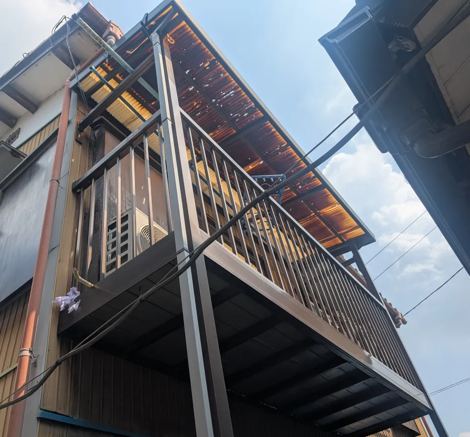 2階のベランダ波板は、紫外線や風雨の影響により年数とともに劣化していきます。